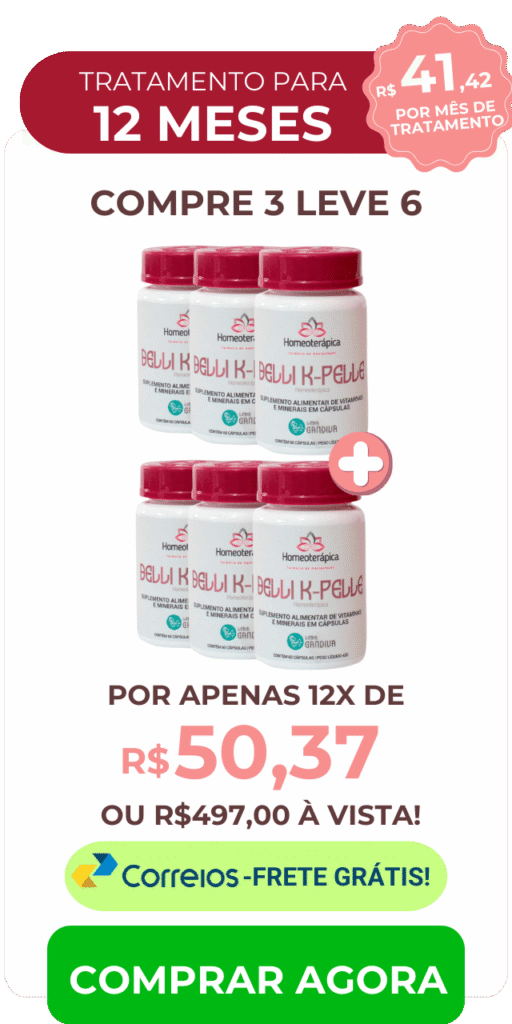 Belli K-Pelle contém Biotina e Zinco, que fortalecem os folículos capilares, reduzindo a queda e promovendo o crescimento saudável dos fios.